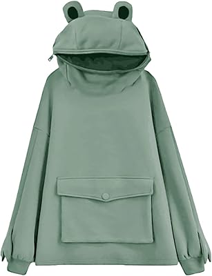 Frog Hoodie Sweatshirt Zipper Mouth for Women Teen Girls