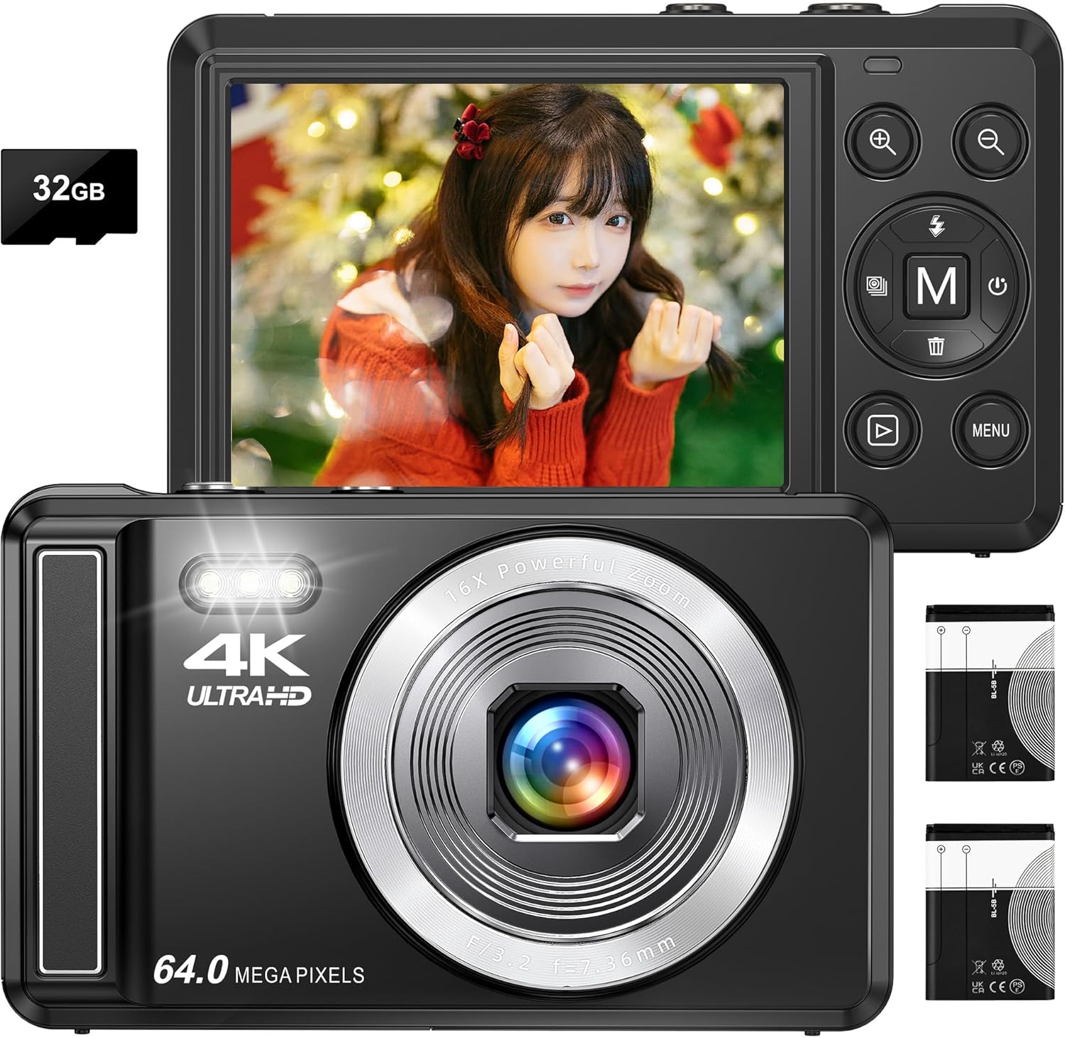 Digital Camera 4K Digital Camera, Compact Camera, 30 FPS 44 MP, YouTube Camera, AF Autofocus